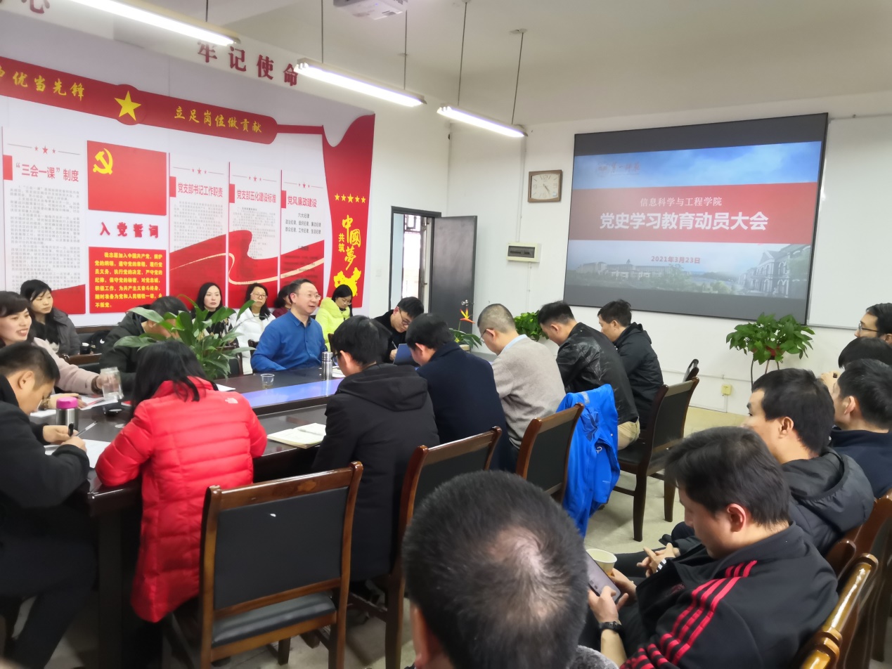 在玉衡北407召开党史学习教育动员大会,全体教职工党员参加。会议由党总支书记王杰文主持。