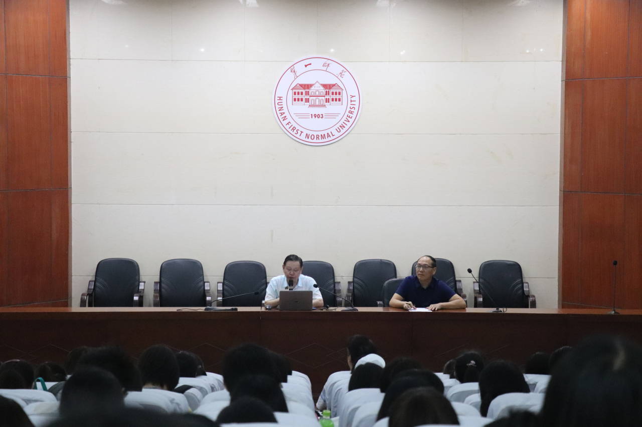做主题为“面向核心信息素养体系的中小学信息技术课程改革”的学术讲座。副院长田祖伟教授、团学会学生干部、2018级教育技术学专业全体学生、湖南师范大学数名研究生参加本次讲座。