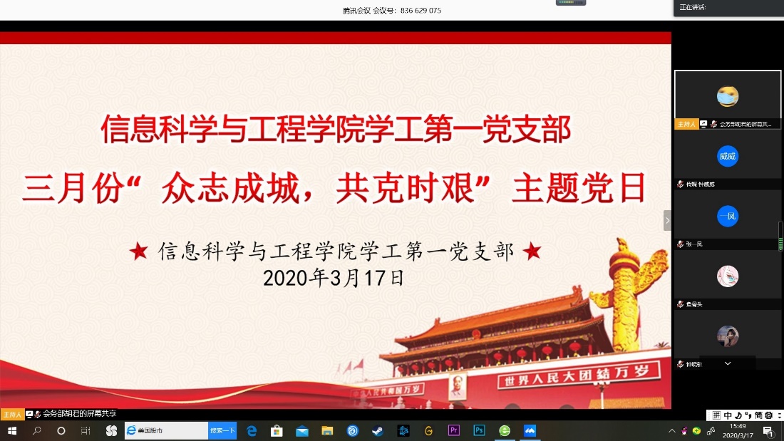 学工第一党支部、第二党支部分别开展了“众志成城,共克时艰”主题党日活动,本次活动是通过腾讯会议系统在线进行的。学工办主任、学工第一党支部书记关红儒,学工办辅导员李荣敬以及两个支部全体党员参加,88看球NBA