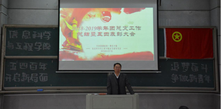 于5月7日中午12点30分在润寰南106隆重举行2018-2019学年工作总结暨五四表彰大会。院党总支书记王杰文教授、副院长田祖伟教授、党总支副书记易利老师,学工办主任关红儒老师,团总支书记唐瑞鸿老师,辅导员叶晶老师应邀出席,88看球NBA