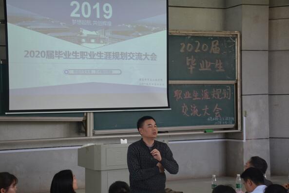 在润寰南105教室隆重举行2020届毕业生职业生涯规划交流大会。院党总支书记王杰文教授、副院长王建军教授、党总支副书记易利老师,学工办老师们及16-18级各班代表参加本次大会。大会由关红儒老师主持。