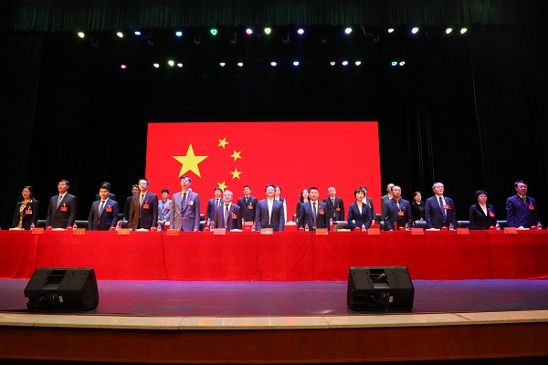 大会在全体起立,奏唱《中华人民共和国国歌》中庄严开幕