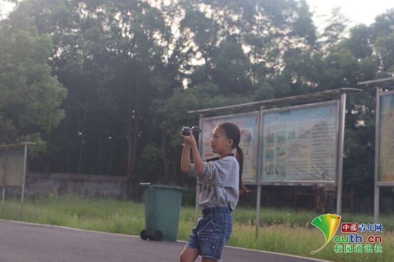 图为经过老师指导后可以独立拍摄的同学在拍摄校园风光。中国青年网通讯员 马唯一摄