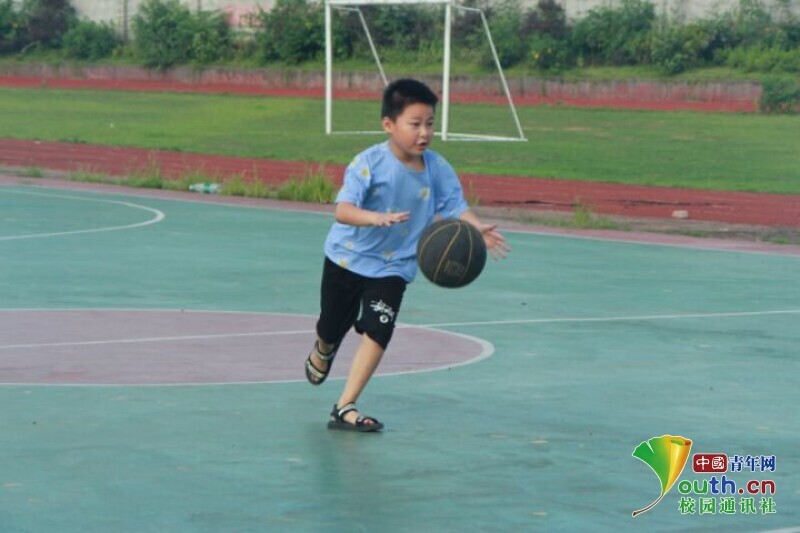 图为热爱篮球的孩子在球场上的身影。 中国青年网通讯员 何星逸摄