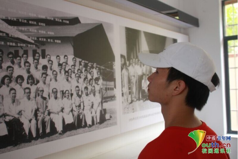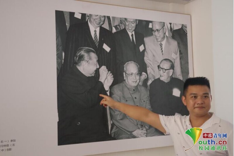 图为新航向·梦之队队员在观看张国基老先生的合照。中国青年网通讯员 欧阳健 摄
