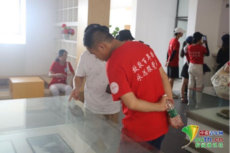 图为指导老师在认真观看张国基老先生的遗留物品。中国青年网通讯员 何星逸 摄