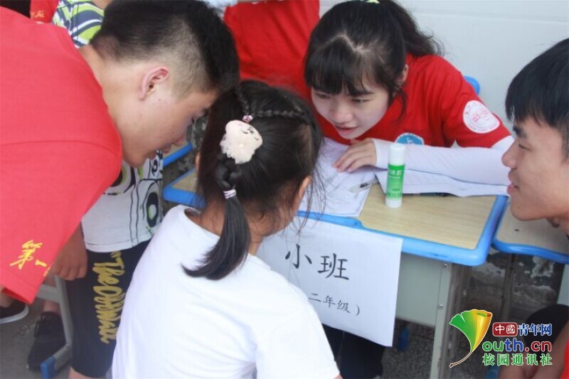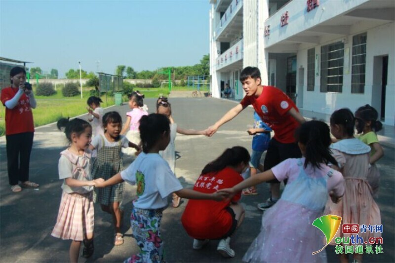 图为班主任带着孩子们玩游戏。中国青年网通讯员 何星逸摄