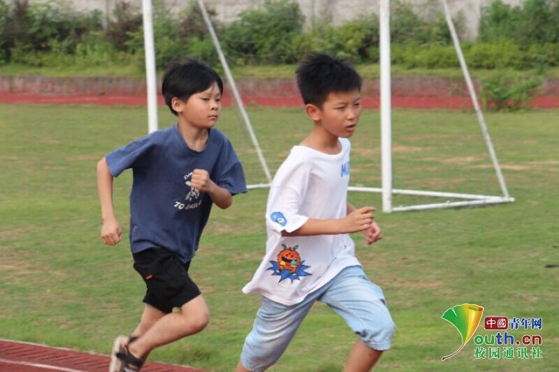 图为在50米短跑比赛中孩子们奋力向前冲刺。中国青年网通讯员 欧阳健 摄