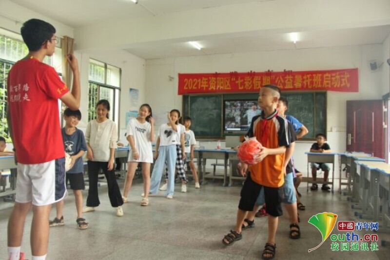 图为孩子们与志愿者一起齐心协力进行拔河比赛。中国青年网通讯员 欧阳健 摄