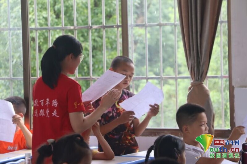 图为音乐兴趣班上“小老师”指导学生演唱《没有共产党就没有新中国》。中国青年网通讯员 段新利 摄