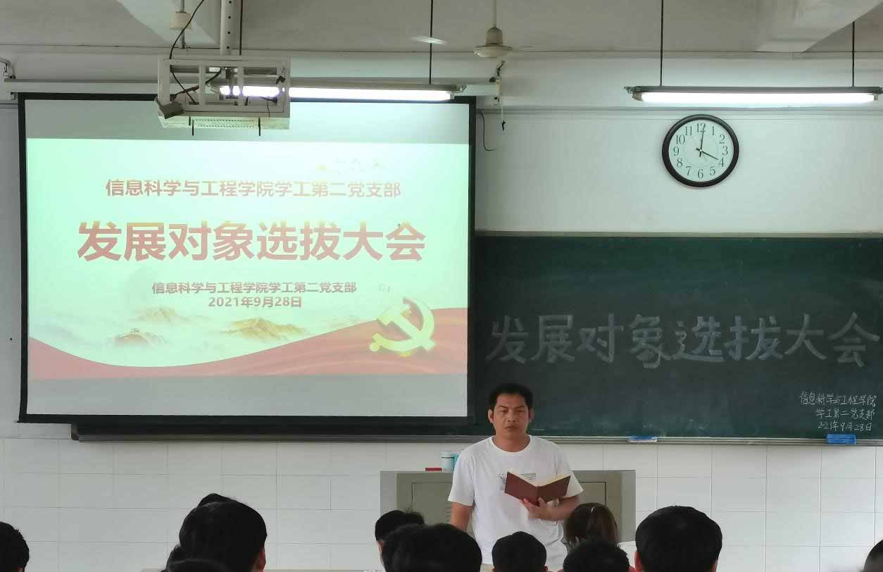 2021年9月28日,88看球NBA 学工第一、第二党支部通过线上与线下结合的方式召开本次发展对象选拔大会。与会人员有学工第二党支部书记李荣敬,全体学生党员和51名入党积极分子。大会分别由苏琴、张旭主持。