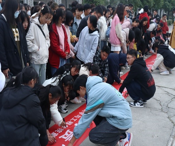活动最后,老师同学们纷纷在“校园防火时时警惕,平安校园人人有责”的宣传横幅上签下了自己的名字,共同承诺创建平安校园,从我做起。