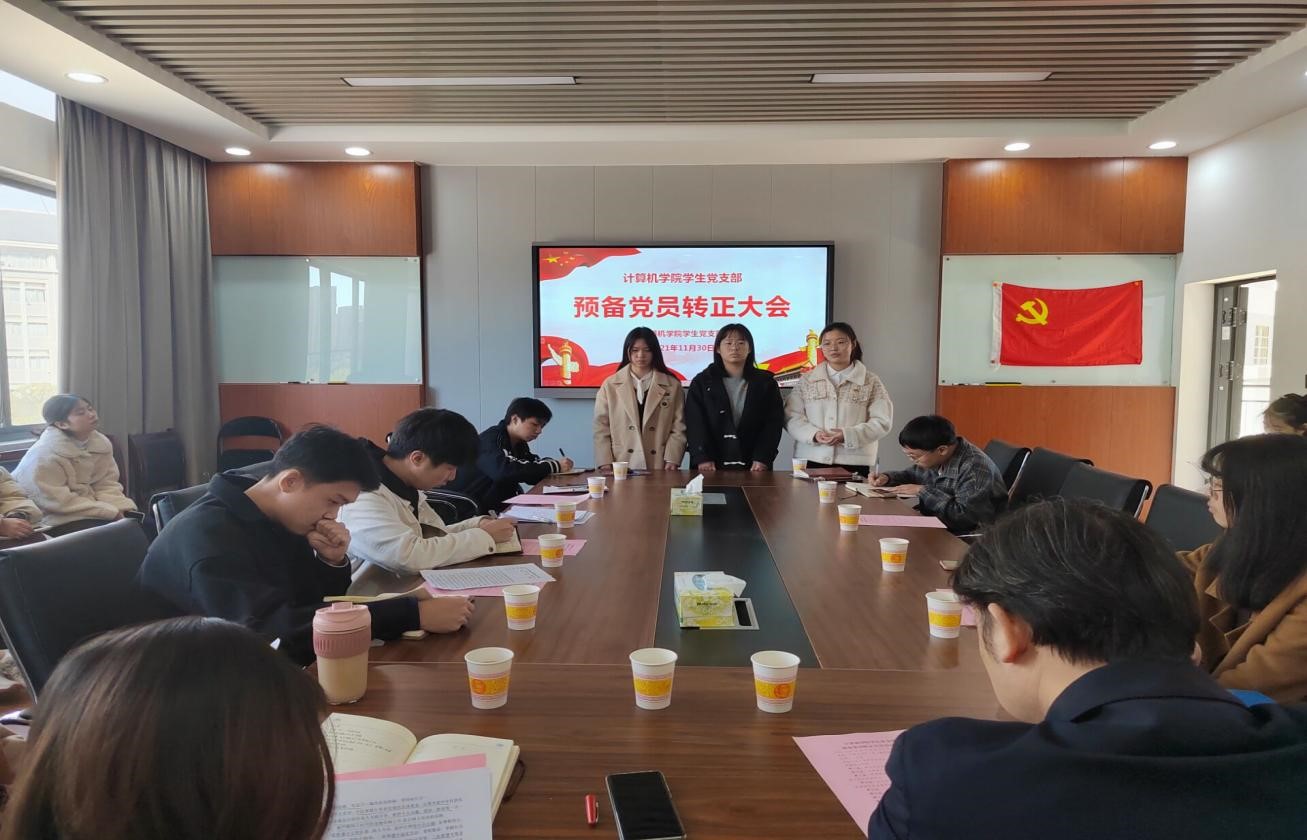 十一月份预备党员转正大会,讨论并表决叶凌峰等16名预备党员按期转正事宜,党委书记刘立勇、党委副书记陈奕、党支部书记关红儒、学工办老师叶晶以及所有学生党员、预备党员参与会议。