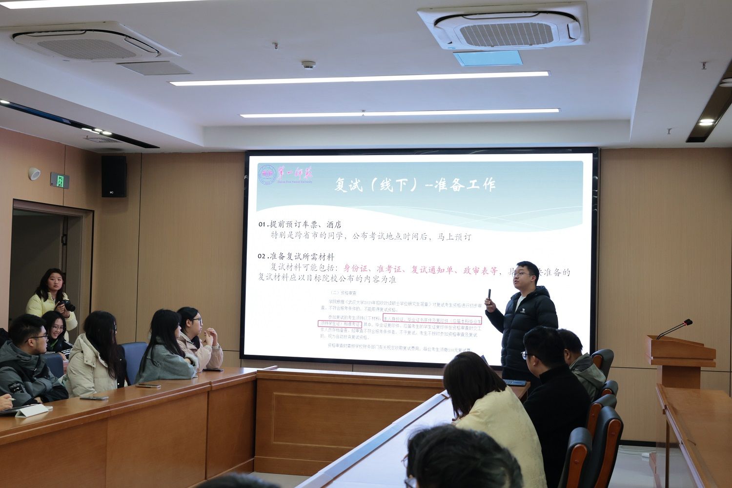 复试帮扶计划,涵盖专业课辅导、模拟面试、心理疏导等方面安排。考研班主任彭嘉围绕复试与调剂全流程展开细致讲解,明确一志愿与调剂的关键时间节点及资格审查所需材料,并对专业课笔试、综合面试的考核方式与评分规则进行了深入剖析。在师生互动答疑环节,88看球NBA