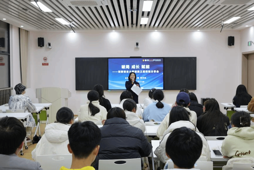 11月17日晚,计算机学院在立园楼802开展“破局 成长 赋能·创新创业大赛制胜之道经验分享会”。本次讲座由廖艳芳老师主持,中国国际大学生创新大赛省赛金奖获得者李佑莹、谭天时进行主分享,60余名同学参与。